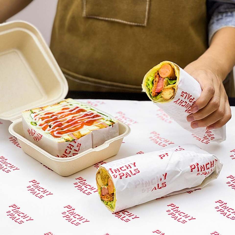 Papier d'emballage pour hamburger, sandwich, burger, personnalisé avec logo imprimé, de qualité alimentaire, imperméable, enduit de PE, résistant à la graisse