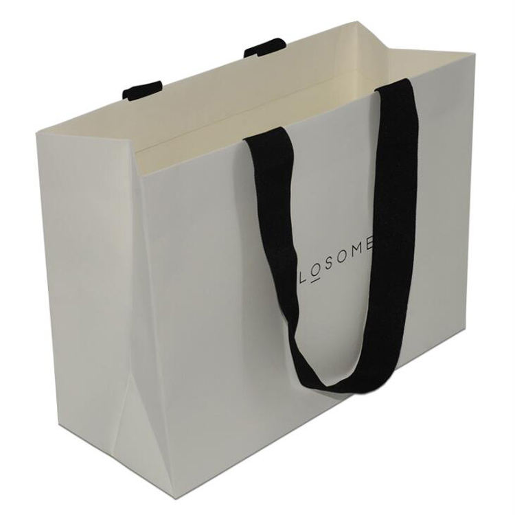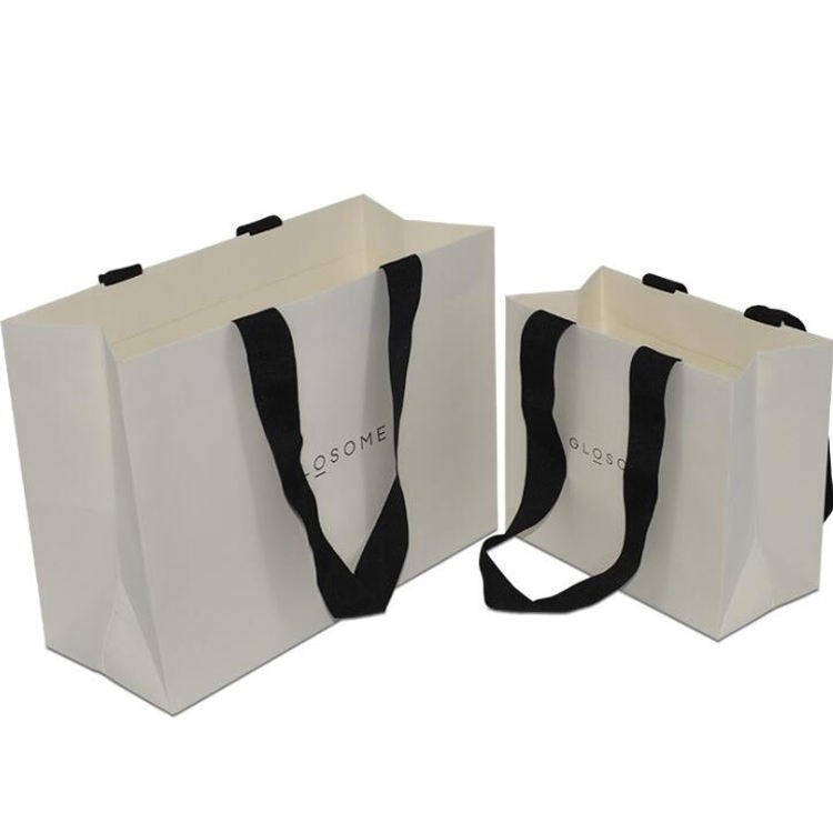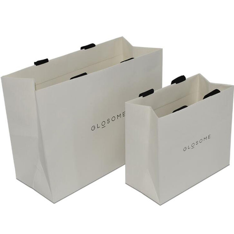 Sac en papier kraft imprimé de logo personnalisé, blanc, brun, vêtements, achats au supermarché, utilisation pour la promotion de l'artisanat, accessoire avec ruban inclus