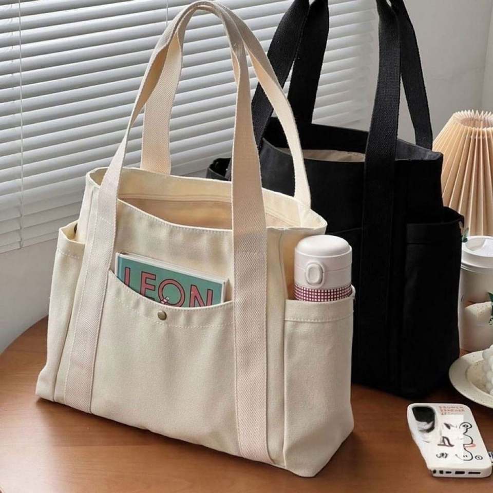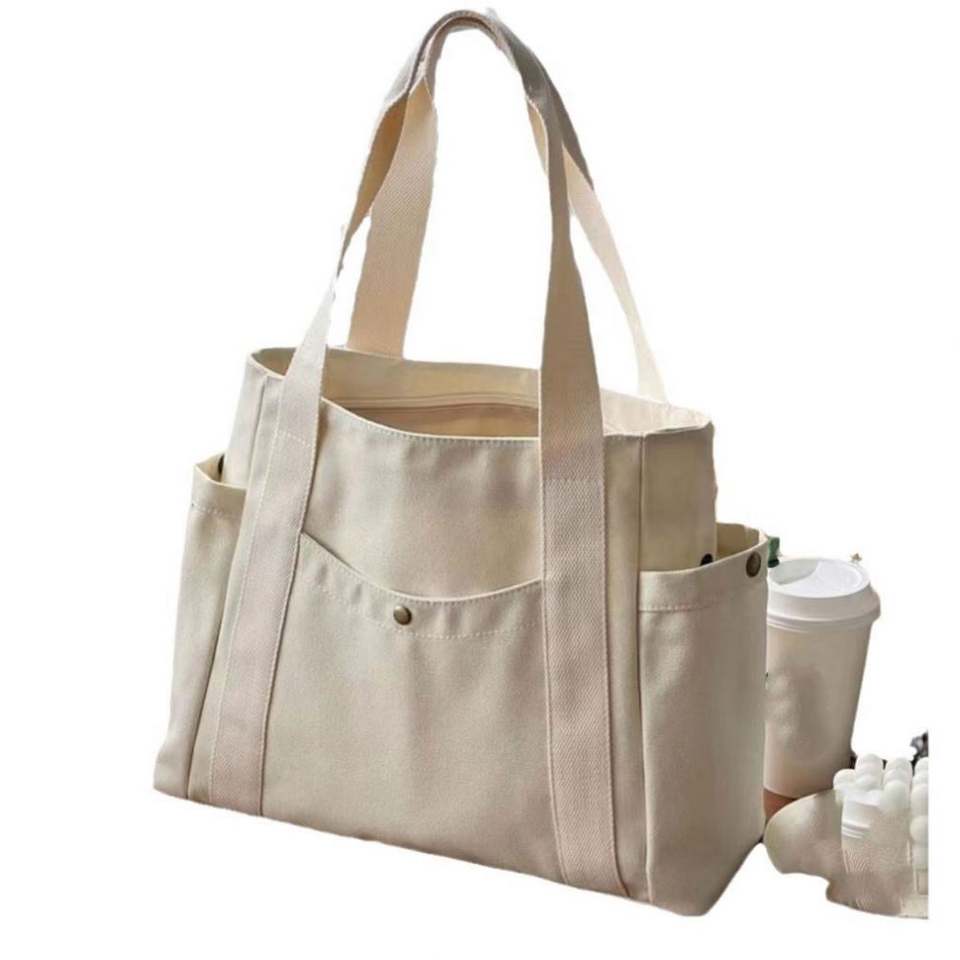 Sac fourre-tout en toile personnalisé avec logo imprimé, grande capacité, pour étudiants, collégiens, avec fermeture éclair et poches