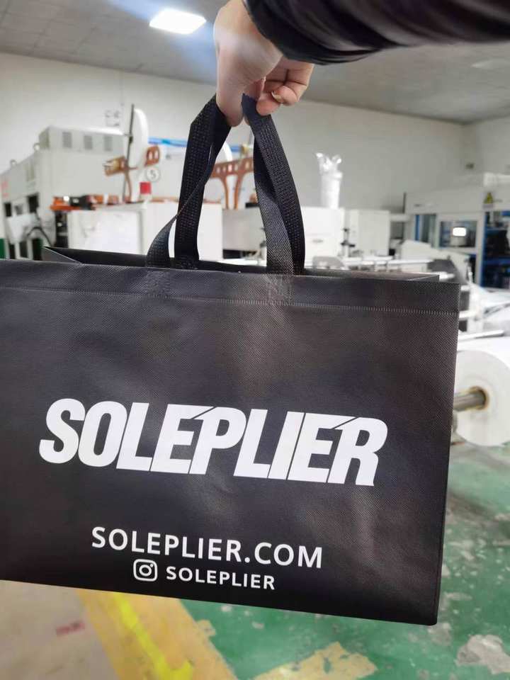 Sacs de courses réutilisables en tissu non tissé avec logo imprimé personnalisé, sacs cadeaux dorés, sacs de courses non tissés personnalisés