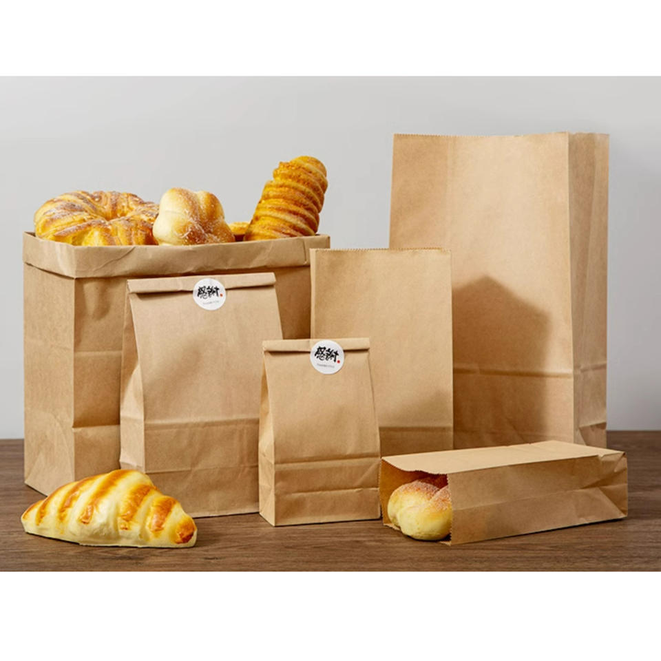 Sacs de transport en papier kraft brun alimentaire à fond plat avec impression personnalisée à emporter boulangerie pour emballage alimentaire