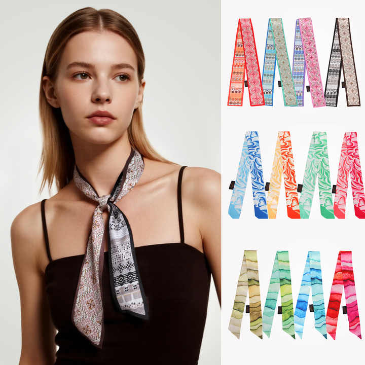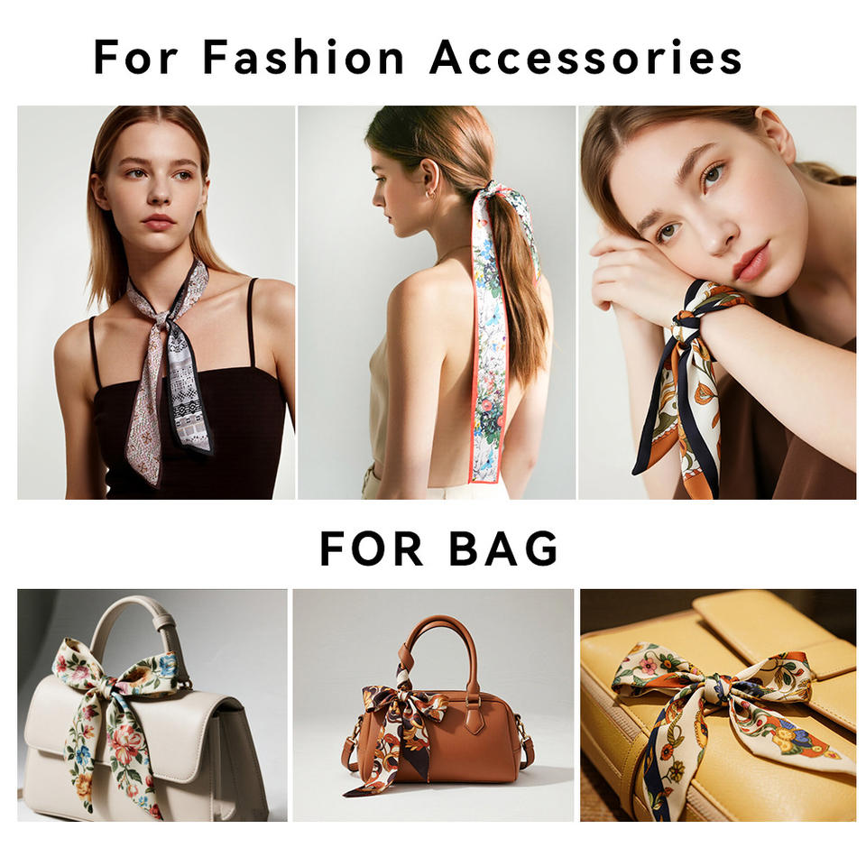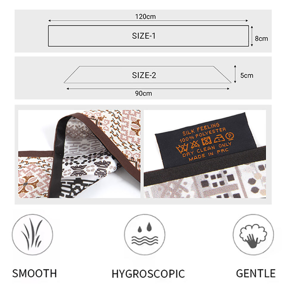 Custom Printed Long Ribbon Scarf 90x5cm & 120x8cm Lightweight Chiffon Feel Scarf, Leaf Argyle Print Hair Neck Scarf for Women