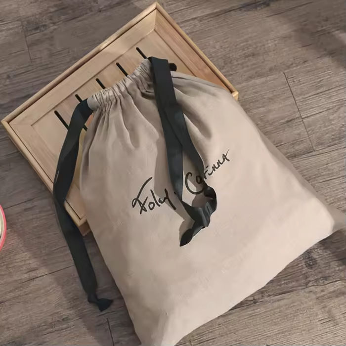 Sac en tissu de lin avec cordon de serrage, imprimé sur mesure avec logo de luxe, grand format, en coton de chanvre, avec ruban