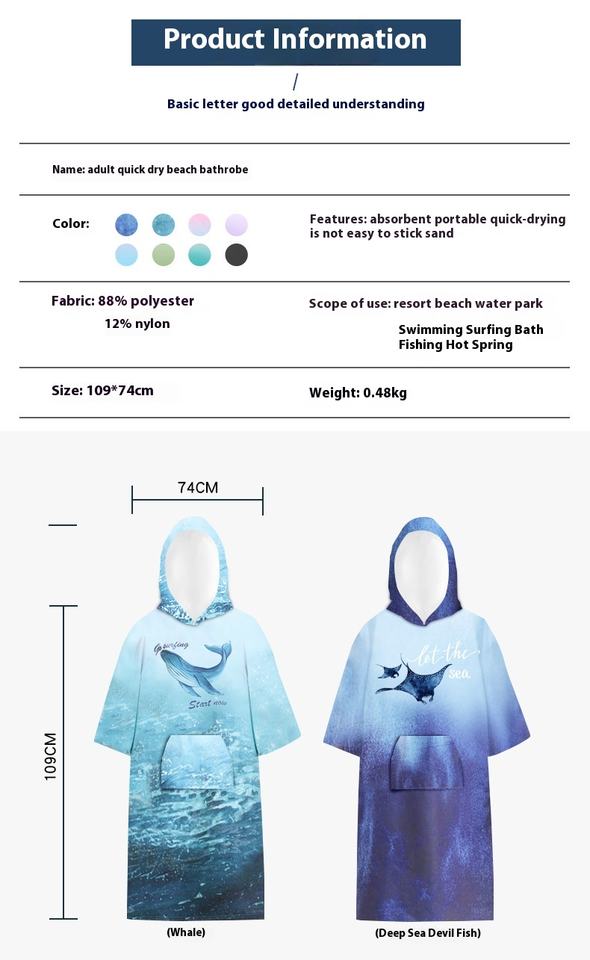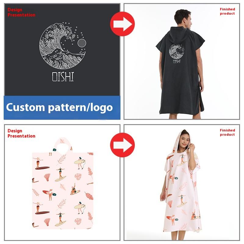 Serviette de bain en microfibre imprimée sur mesure à motif de dessin animé à séchage rapide poncho à capuche personnalisé manches de poche peignoir à langer surf