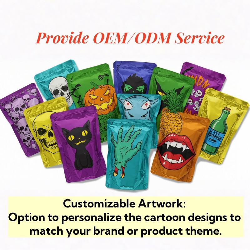 Sachets Doypack Personnalisés Imprimés Étanches à l'Humidité et aux Odeurs, Sachets Refermables en Mylar de 3,5 g pour Emballage Alimentaire