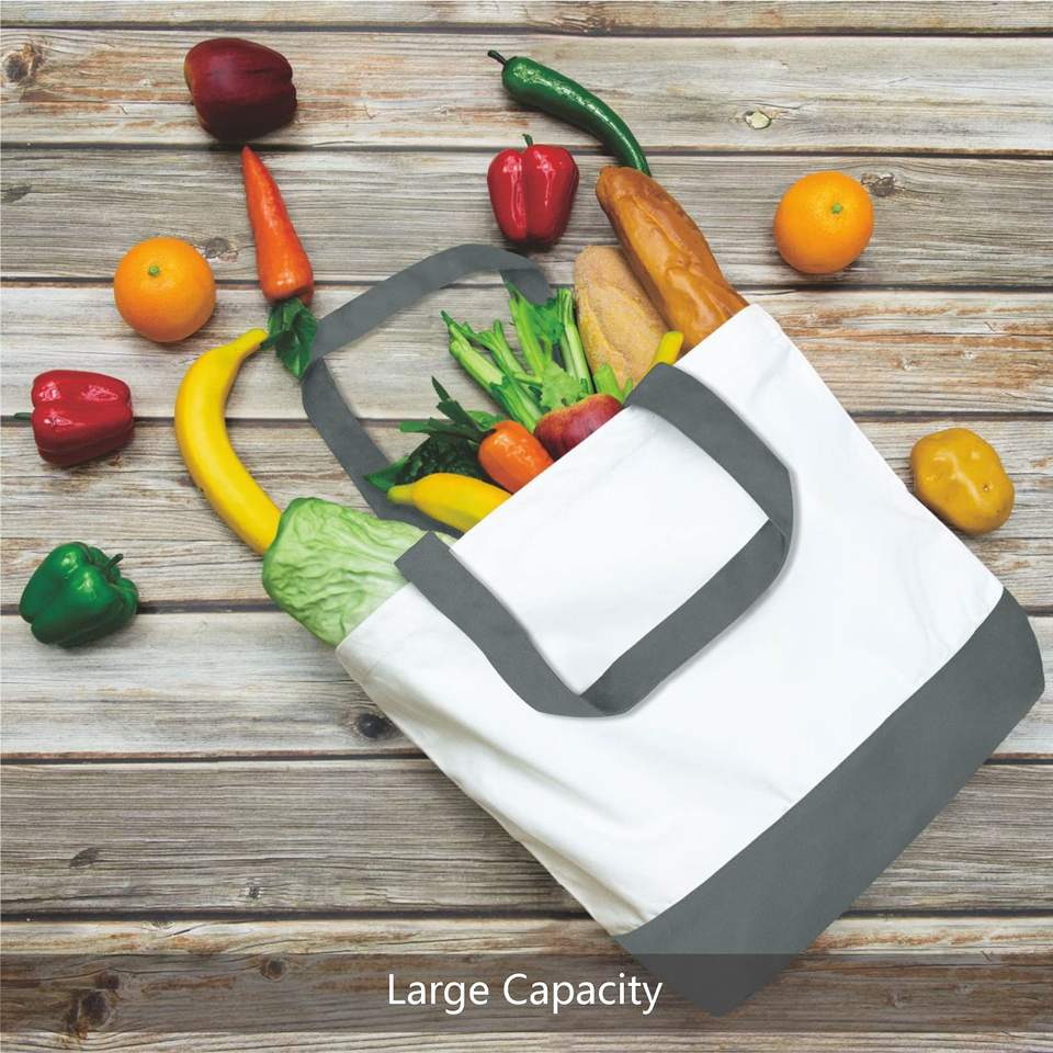 Sac à provisions vierge uni de grande capacité imprimé sur mesure Sac fourre-tout en toile de coton recyclé avec lettre et logo avec poche zippée