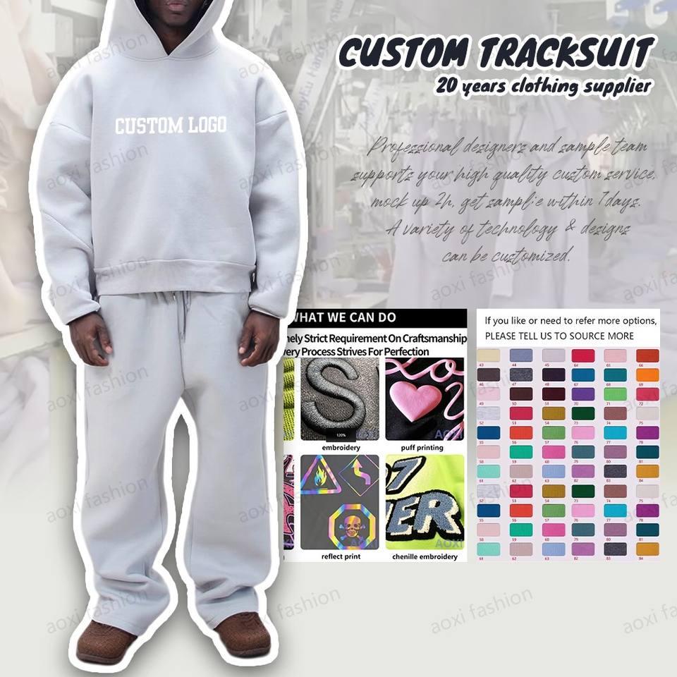 Ensemble survêtement homme grande taille personnalisé imprimé, pantalon de jogging ample et sweat à capuche, en molleton épais French Terry, fabricant
