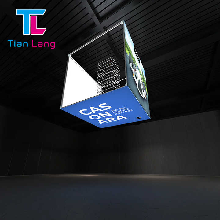Caisson lumineux de publicité de cube de LED de plafond suspendu portatif imprimé par coutume pour l'affichage en aluminium d'expositions de salon commercial