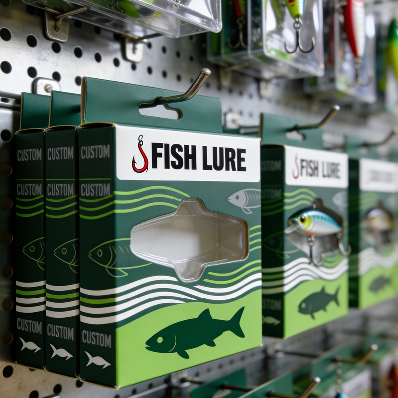 Boîte en blister transparente en PVC recyclable imprimée sur mesure avec support en carton imprimé pour leurres de pêche