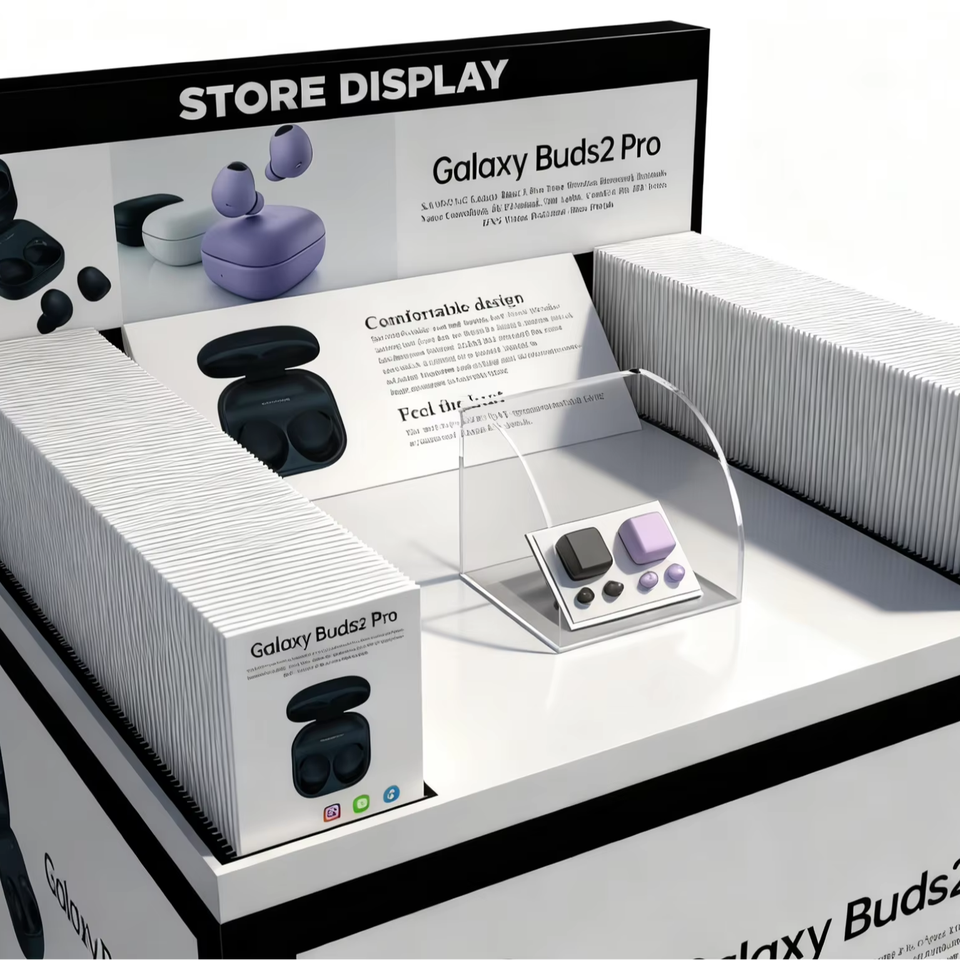 Vitrine en carton recyclé imprimée sur mesure avec style vintage autoportant à faire soi-même pour la vente au détail d'audio en boutique