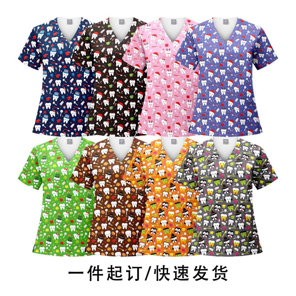Custom Printed Scrub Tops Unisex Polyester V-Neck Medical Workwear Hospital Uniforms