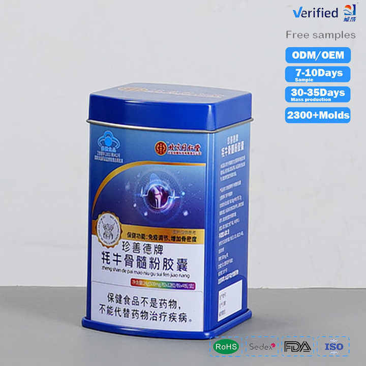 Custom Printed Small Metal Tin Box With Lid Empty Tin Packaging Container for Pill Capsule Supplement Manufacturer