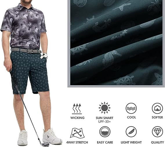 Short de golf à motif uni imprimé sur mesure avec impression par sublimation de confort élastique Service OEM Logo personnalisé