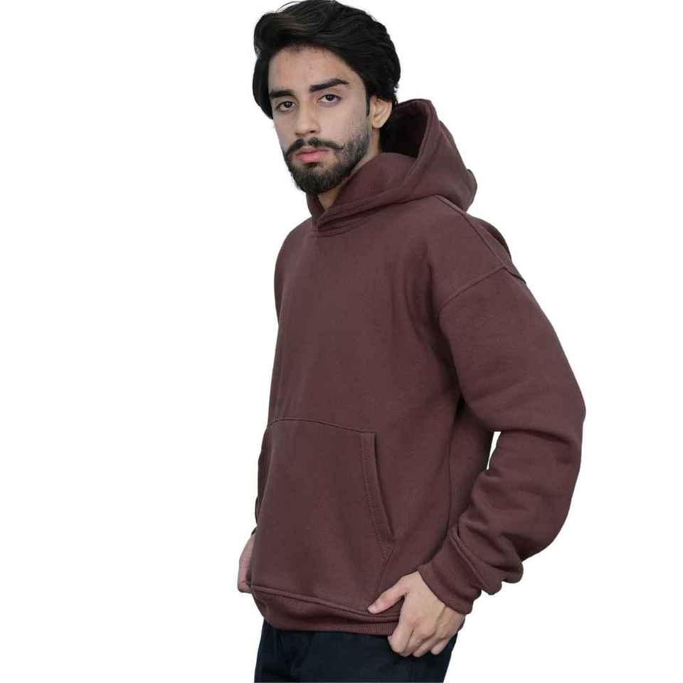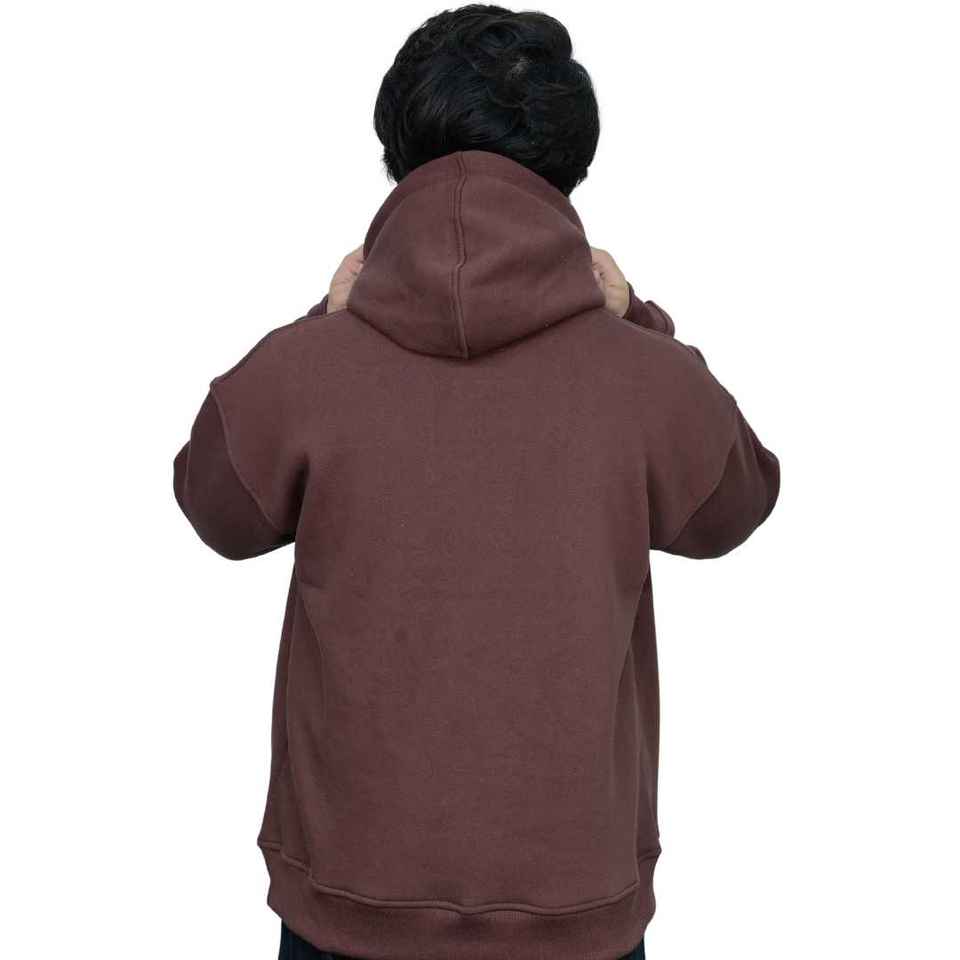 Sweat à capuche pour homme en coton et élasthanne, imprimé personnalisé, tissé, marron délavé vintage, entièrement zippé, coupe oversize