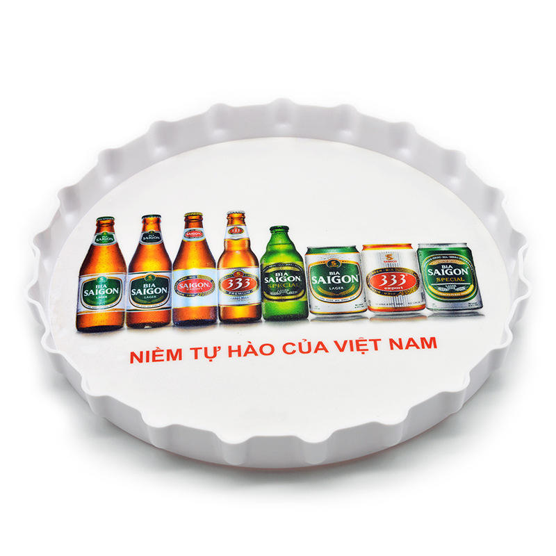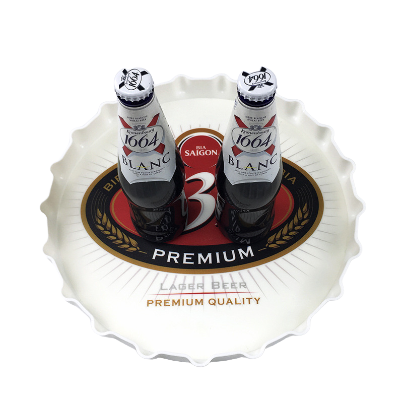 Plateau de service en acier inoxydable imprimé sur mesure, antidérapant, pour aliments, en noir, rouge, vert, pour la brasserie Ceres au Cambodge