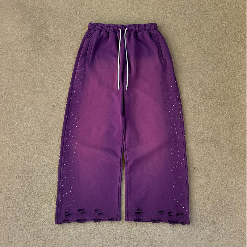 Pantalon de jogging double taille imprimé sur mesure, effet délavé soleil, style streetwear, délavé à l'acide, effet usé, coupe ample pour homme