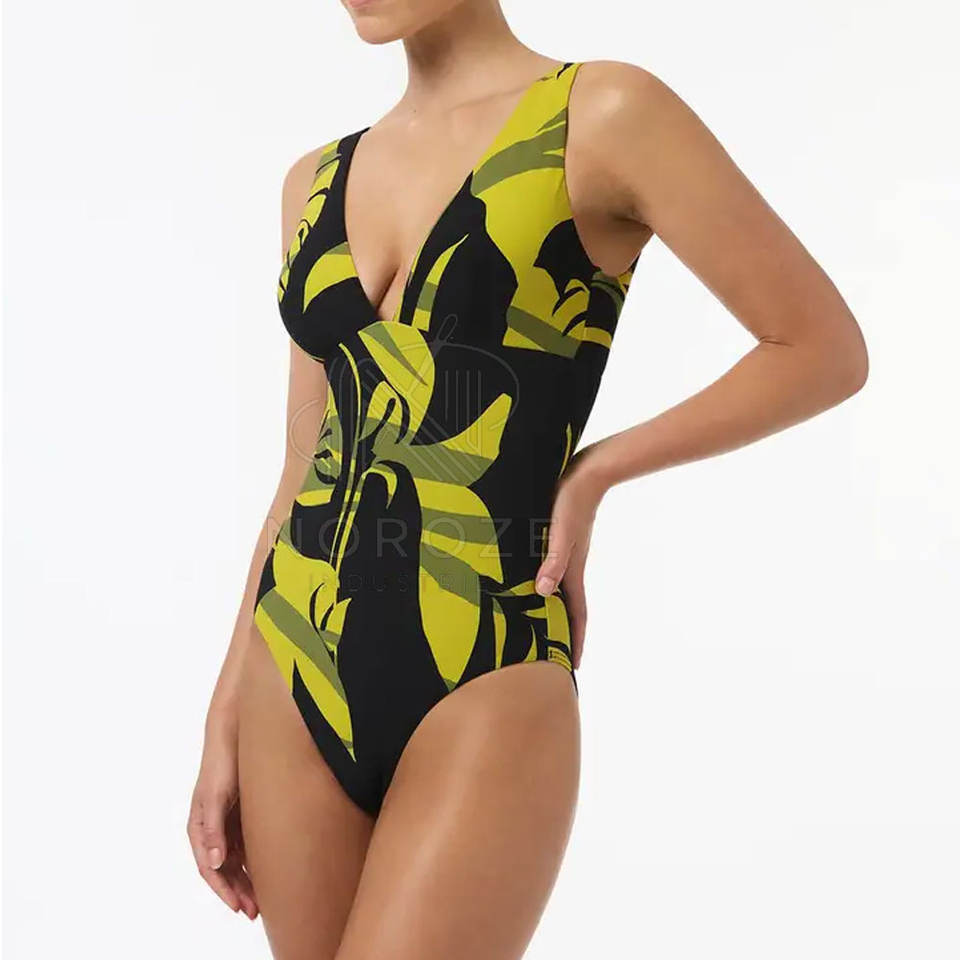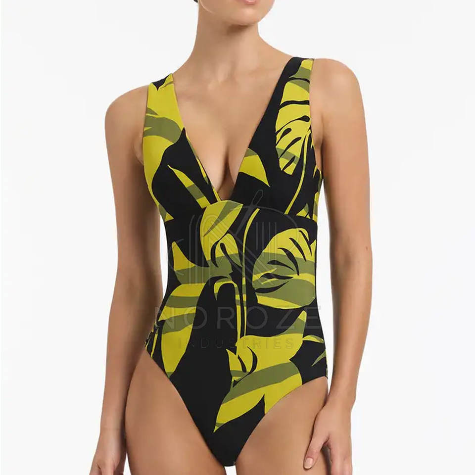 Maillot de bain imprimé personnalisé pour femmes Maillot de bain une pièce sans manches en polyester pour femmes Tissu respirant
