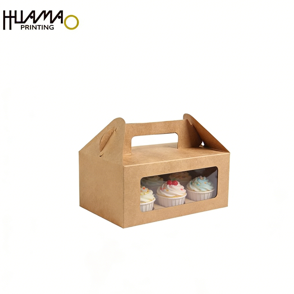 Boîte à gâteau en papier kraft personnalisée avec poignée et fenêtre, emballage alimentaire portable de qualité alimentaire pour gâteaux et pâtisseries