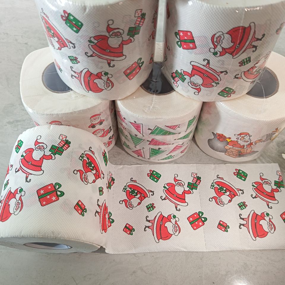 Papier toilette vierge imprimé personnalisé pâte de bois 3 plis Joyeux Noël rouleau de papier hygiénique pour la décoration de fête à la maison
