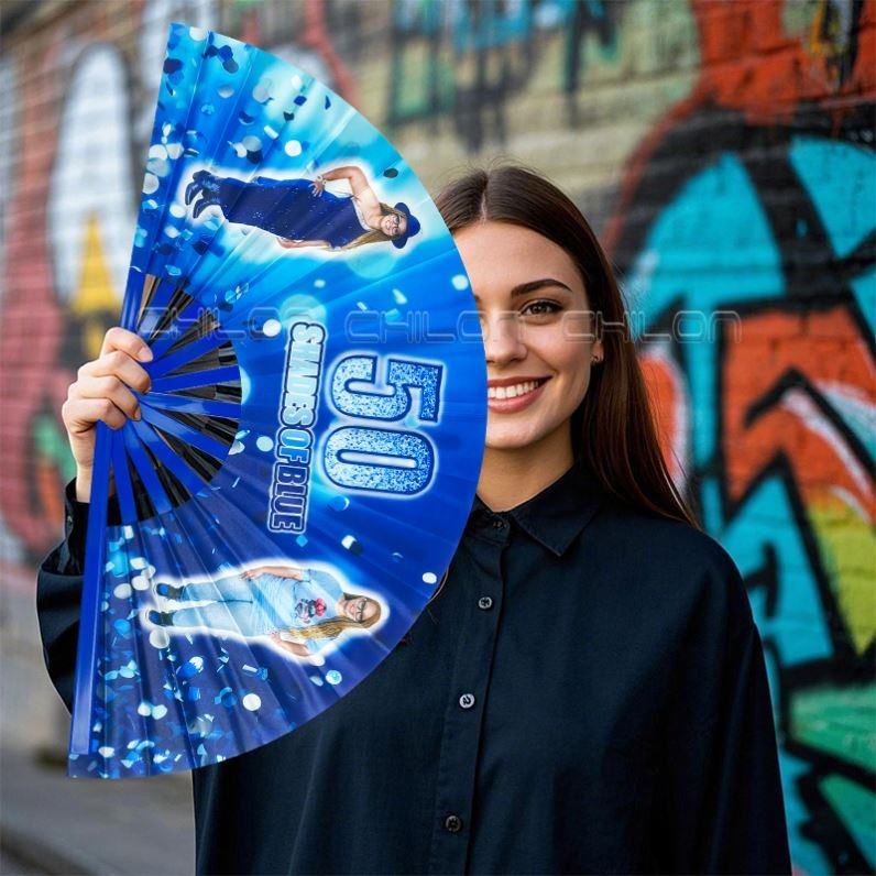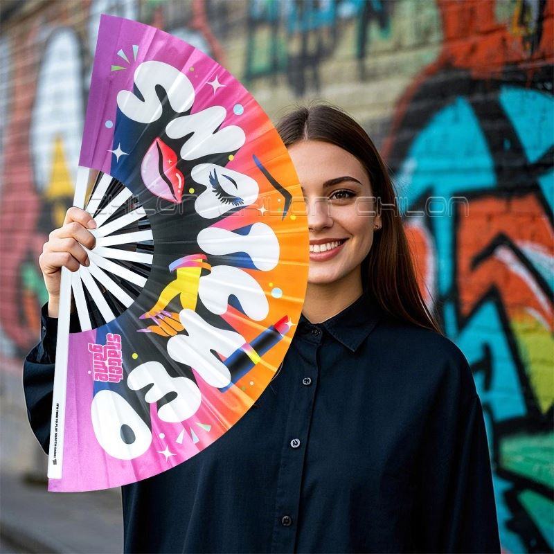 Grand ventilateur pliable en bambou 13 pouces réfléchissant les UV imprimé sur mesure pour accessoires Rave