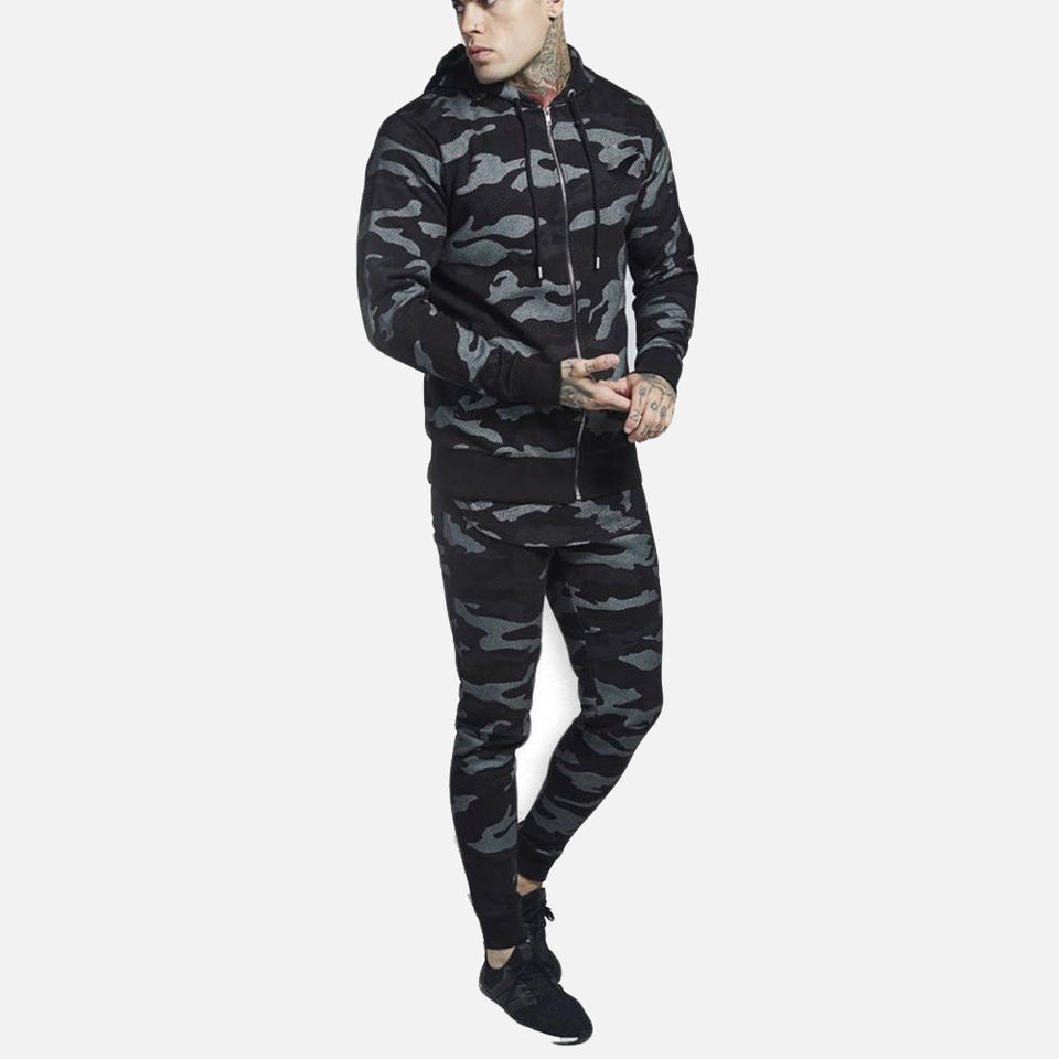 Ensemble de survêtement décontracté pour homme en molleton technique imprimé personnalisé, 2 pièces, avec capuche - Design de luxe