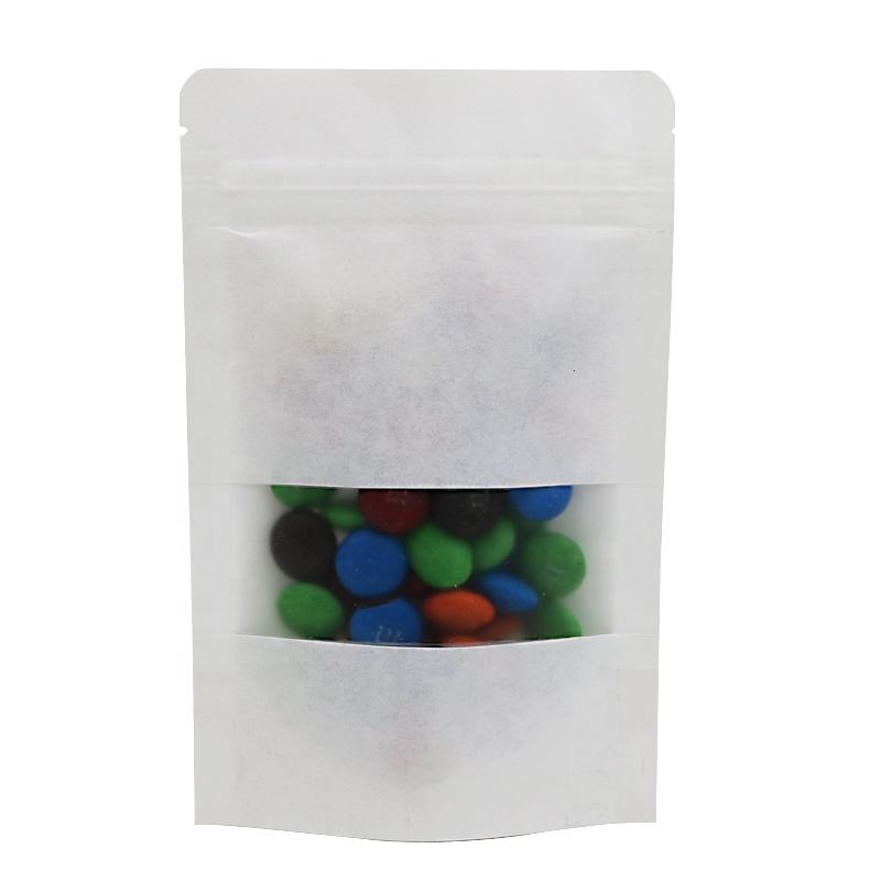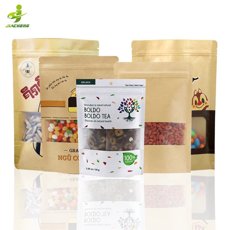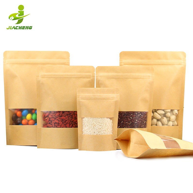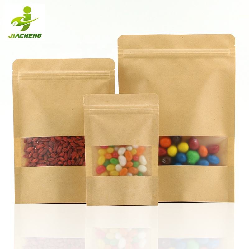 Sac en papier kraft biodégradables avec logo imprimé, doypack, pochette à fermeture éclair, réutilisable, avec fenêtre transparente, unités