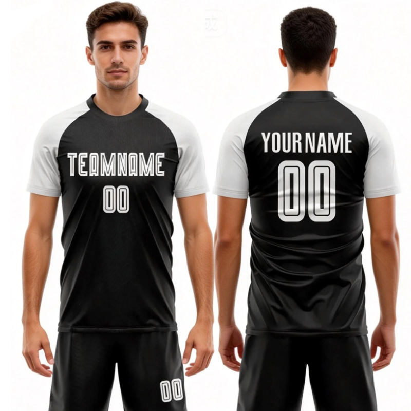 Impression personnalisée, uniforme de football pour adultes et enfants, uniforme d'entraînement, maillot de football personnalisé pour jeunes, maillot de football en mesh noir et blanc pas cher