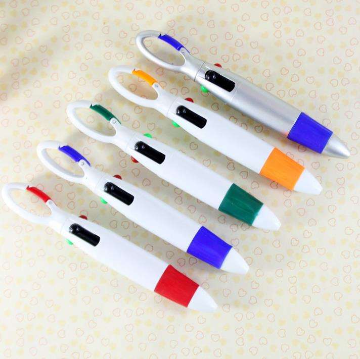 Stylo à bille multicolore en plastique avec impression personnalisée, mousqueton d'escalade, 4 couleurs, publicité hôtelière