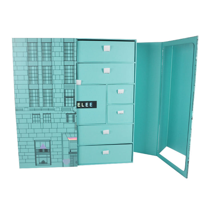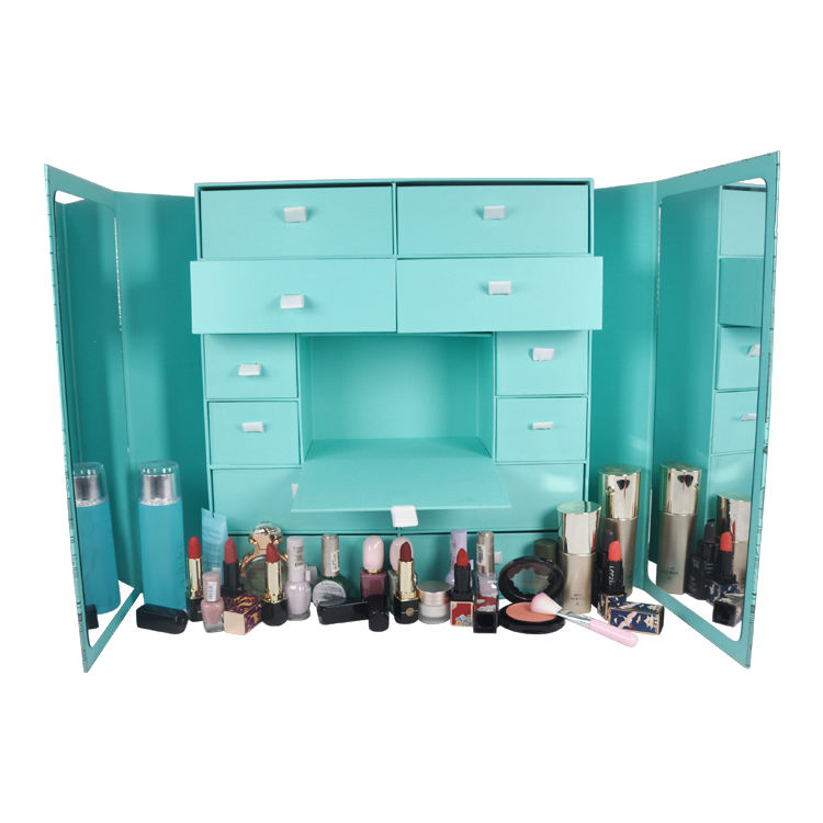 Calendrier d'entrée vide à impression personnalisée, en carton avec grand miroir, boîte d'emballage de luxe, pour cosmétiques, calendrier, pour maquillage