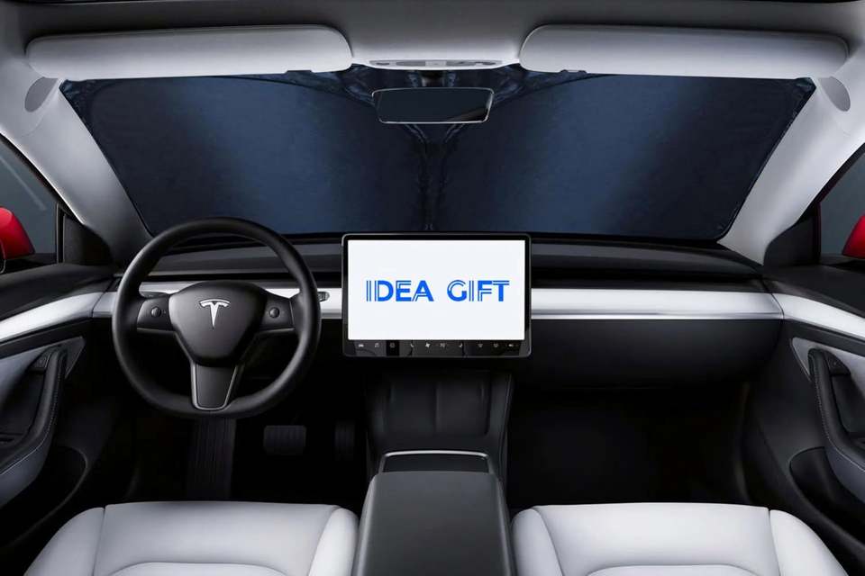 Pare-soleil de voiture pliable en polyester avec impression personnalisée, double cercle, logo Tesla, pare-soleil de pare-brise pour Model 3 Y