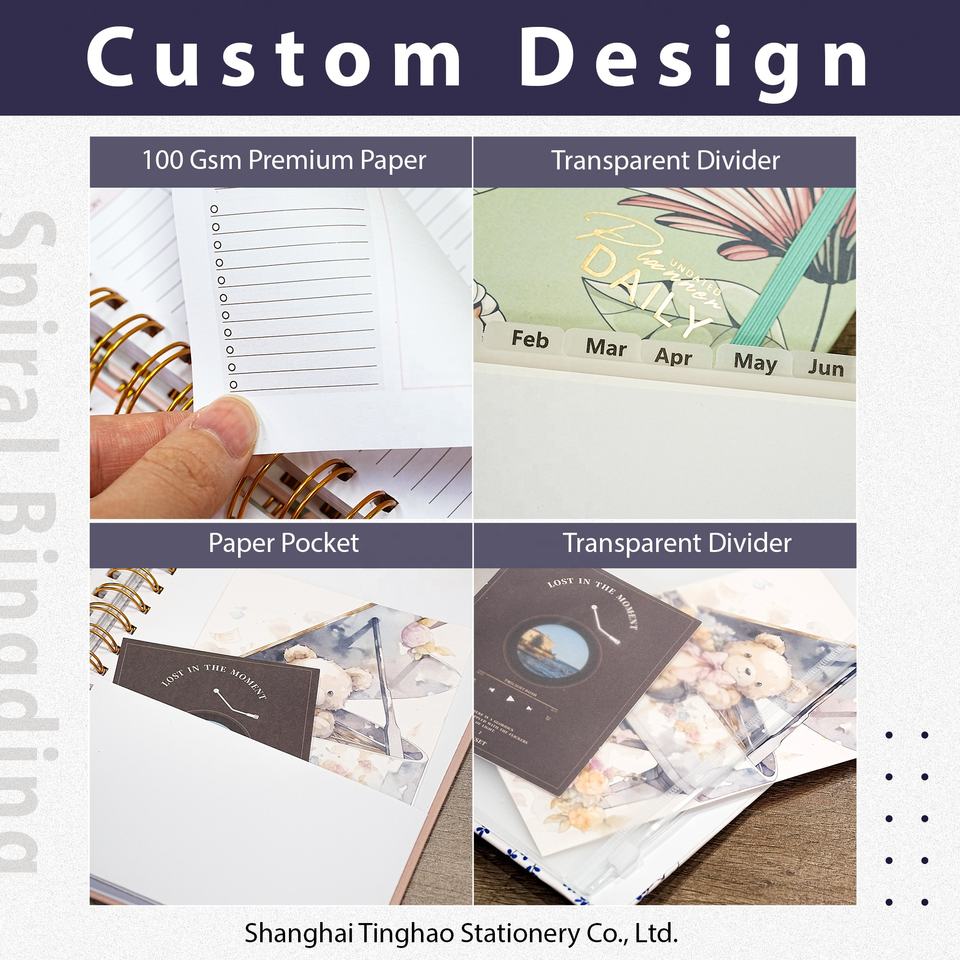 Carnet à spirales relié rigide personnalisé A5, journal, fournitures scolaires pour étudiants, motif marguerite, planificateur quotidien, hebdomadaire, mensuel non daté