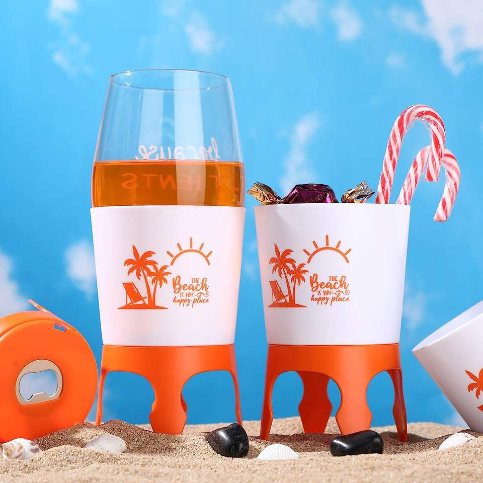 Porte-gobelets de plage avec logo personnalisé et ouvre-bouteille, porte-gobelets à bière en sable