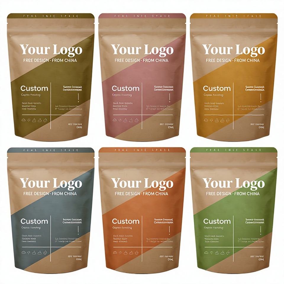 Sachets de café refermables avec logo imprimé personnalisé, emballage alimentaire biodégradable avec fermeture éclair pour grains de café, sac d'emballage en papier kraft