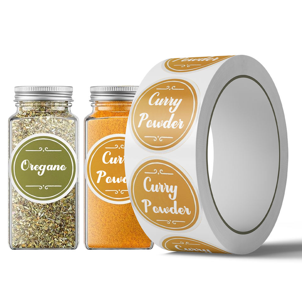 Étiquettes personnalisées en vinyle imprimées avec logo pour emballages alimentaires, idéales pour les bouteilles et pots à épices transparents de 8oz, 5oz, 4oz