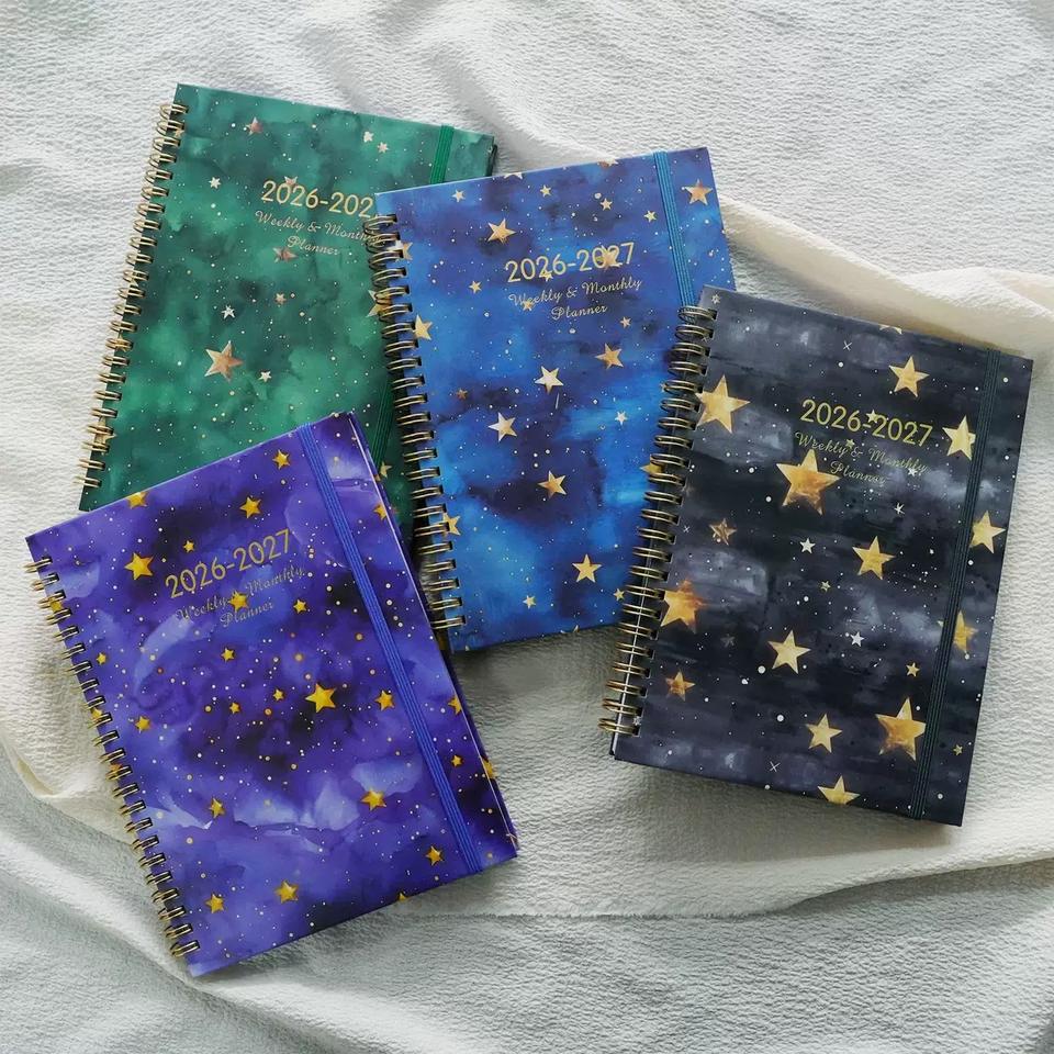 Carnet de notes à feuilles mobiles personnalisé 2026 2027 avec dorure à chaud, planificateur hebdomadaire des objectifs de vie et ensemble d'autocollants