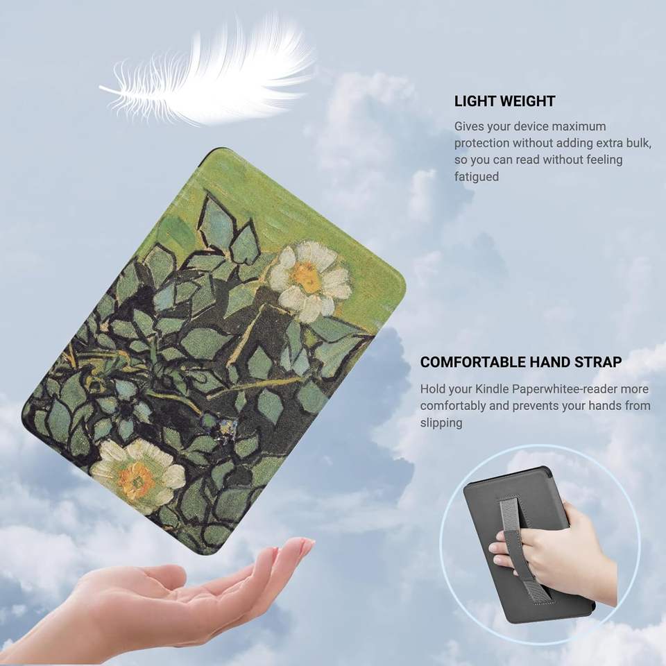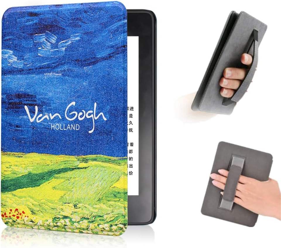 Étui intelligent de couverture de livre en cuir PU à impression personnalisée avec dragonne pour Amazon Kindle Colorsoft et Kindle Paperwhite 6 12th Gen 7'
