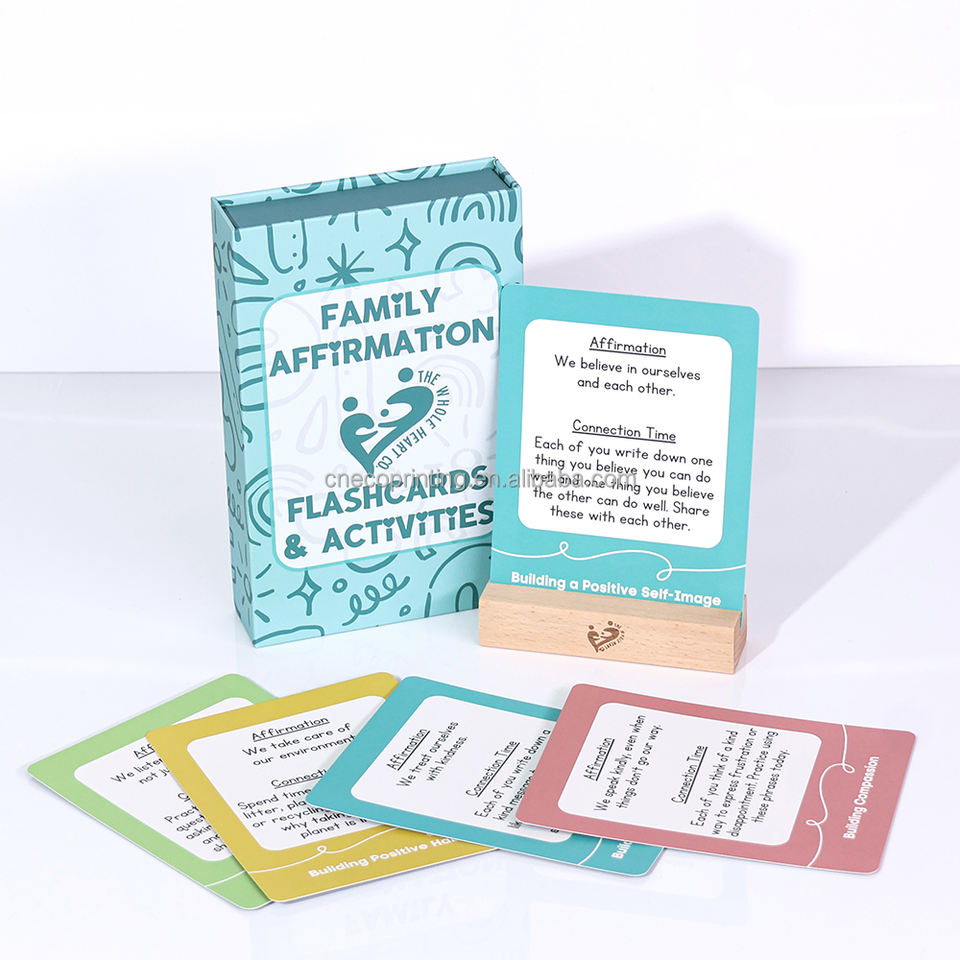 Impression personnalisée Encouragement positif Inspiration familiale Relation Affirmation jeu de cartes avec support en bois pour les nouveaux parents