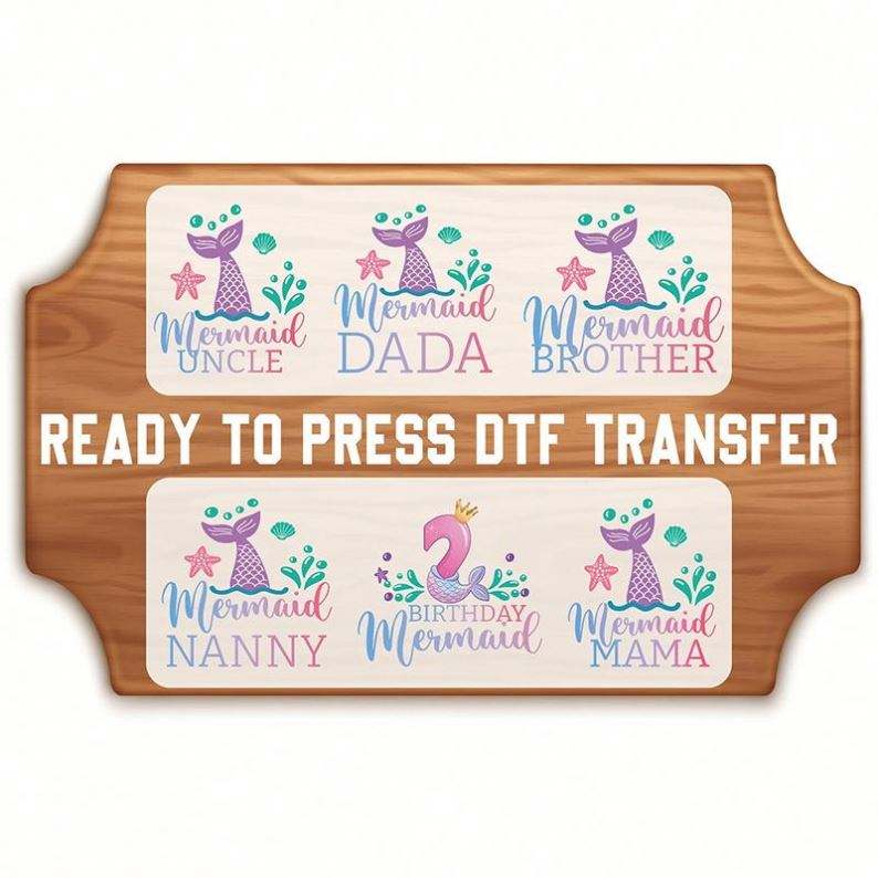 Custom Printing Service Mermaid Family DTF Sticker Print t Shirt Clothing DTF Heat Transfer Fabric for Birthday Party