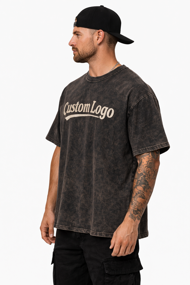 T-shirt Homme Vintage Oversize 100% Coton Lourd 320 GSM avec Impression Personnalisée du Logo – Modèle 2026