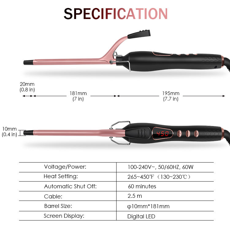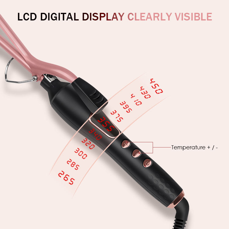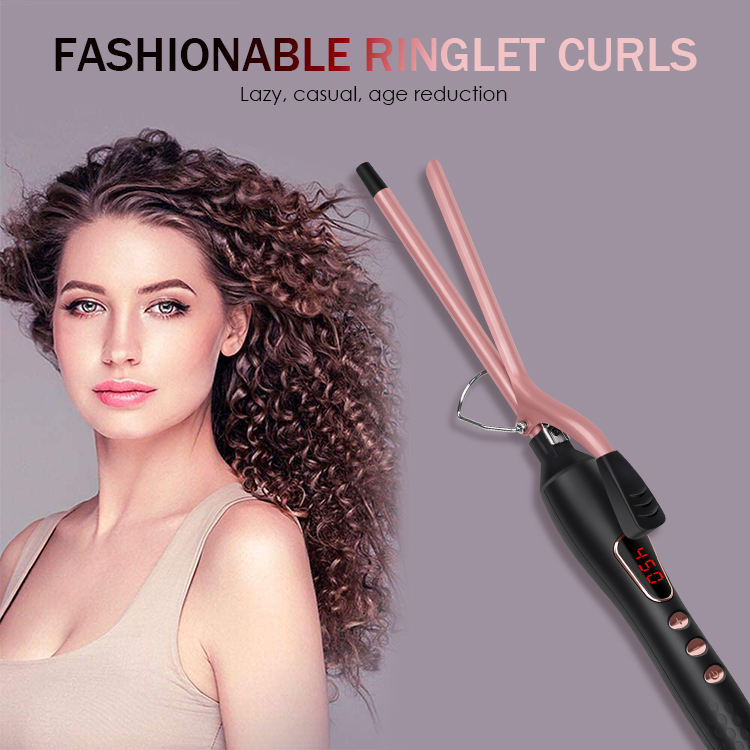 Fer à friser en céramique à étiquette privée personnalisée 9 mm avec écran LED et chauffage double PTC pour petites boucles serrées