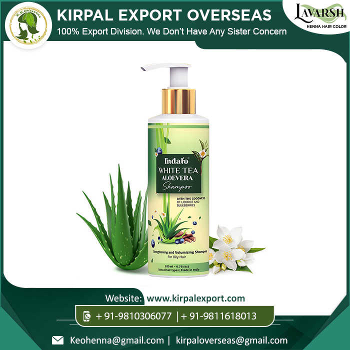Marque privée de shampoing pour cheveux, thé blanc, Alovera, produit de soins capillaires, fournisseur indien, fabricant