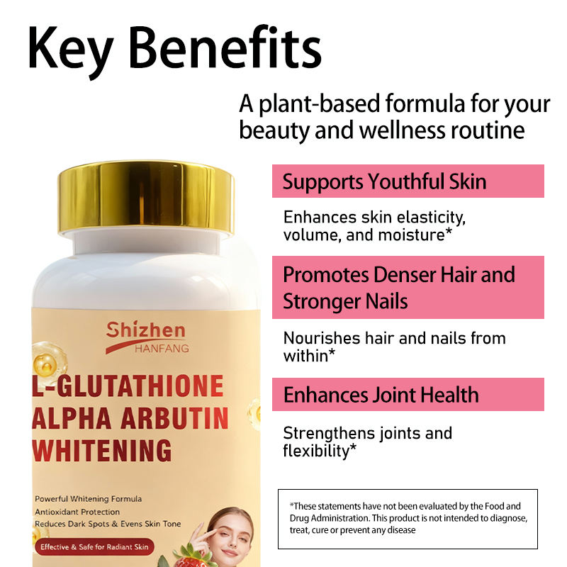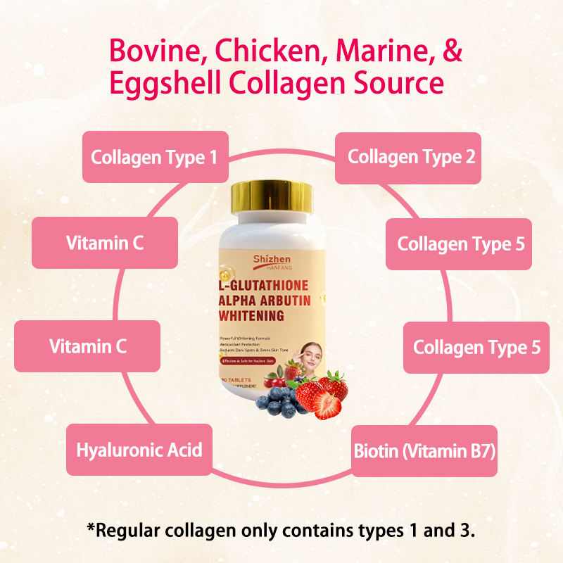 Comprimés blanchissants personnalisés à marque privée L-Glutathion Alpha Arbutine pour l'éclaircissement de la peau et antioxydant