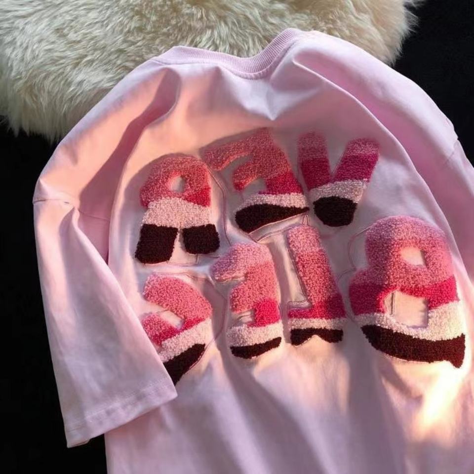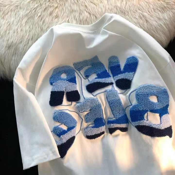 T-shirt surdimensionné en coton lourd 100 % pour homme, avec logo personnalisé en lettres, imprimé floqué et tricot chenille