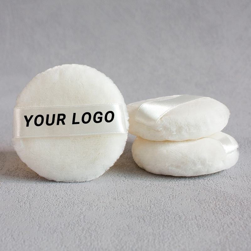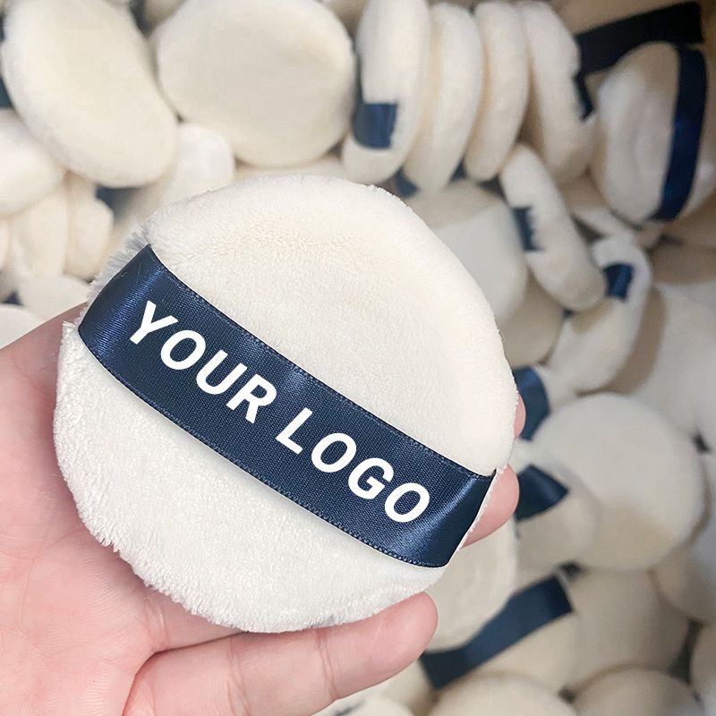 Bouffée de poudre ronde blanche de marque privée personnalisée Houppette d'éponge de maquillage épaisse en velours de haute qualité pour le réglage de maquillage du visage en poudre libre