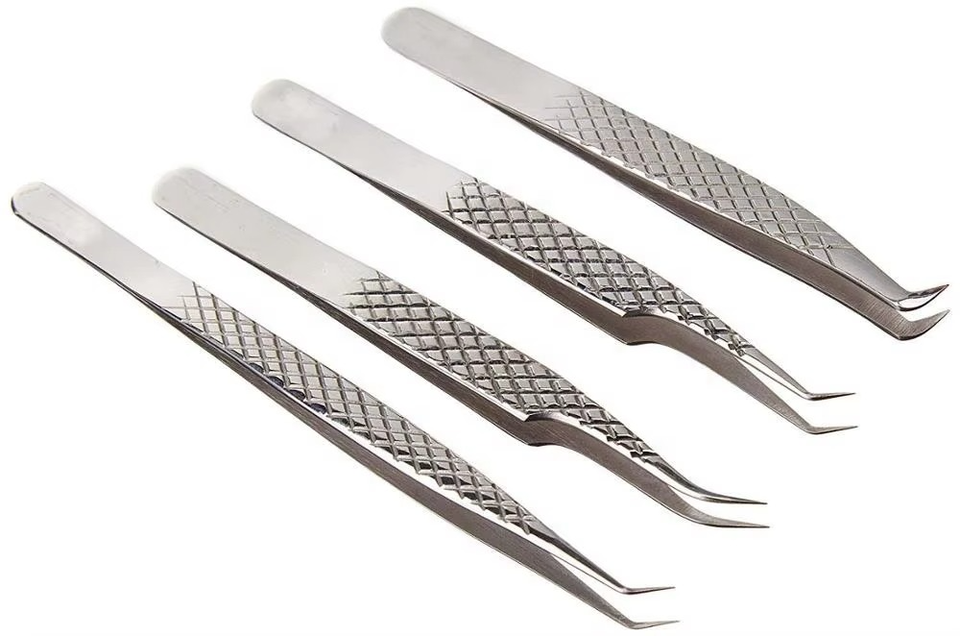 Ensemble de pinces à extensions de cils en acier inoxydable Zullo Industries, étiquette privée personnalisée, pointe pointue, prise diamantée à 90 degrés