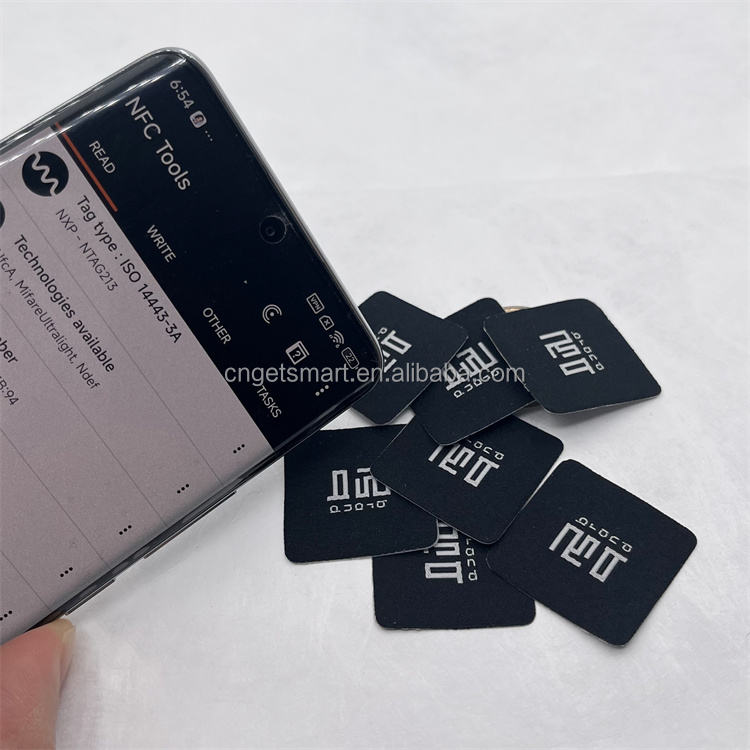 Étiquettes tissées personnalisées NFC RFID 13,56 MHz étanches mini pour vêtements, conception imprimée lavable pour vêtements