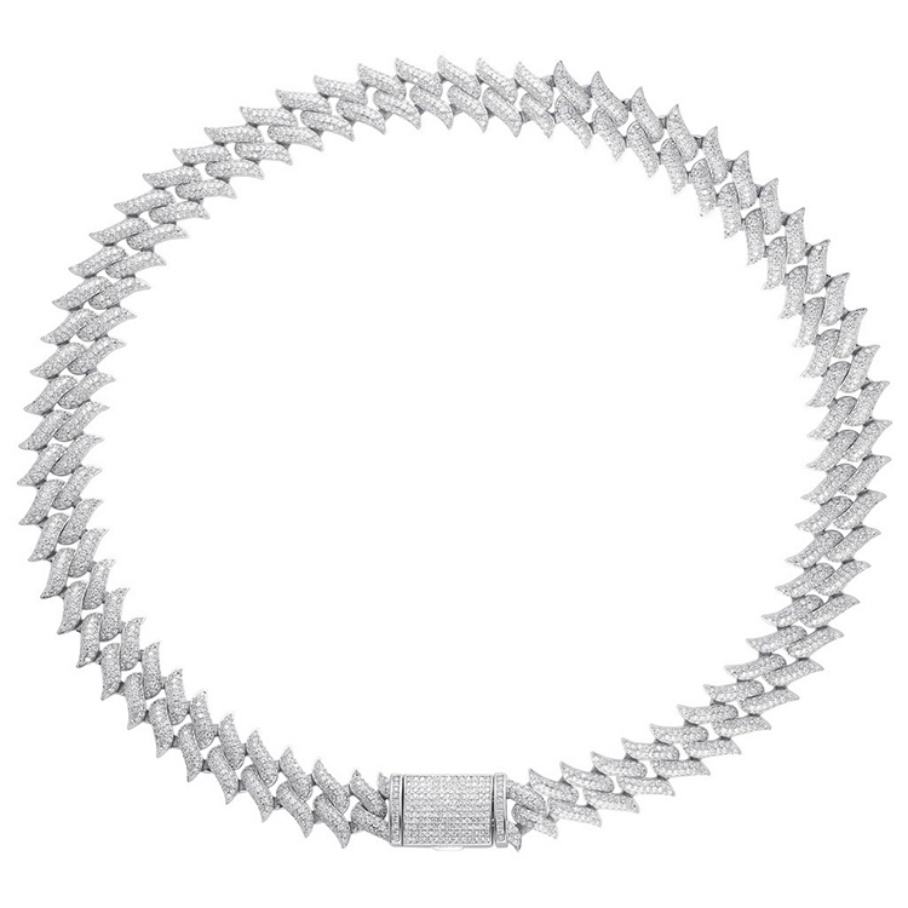 Chaîne cubaine à pointes personnalisée de qualité supérieure, 12 mm, 16 mm, Ice Out D Moissanite Diamond Hiphop Necklace Silver Link