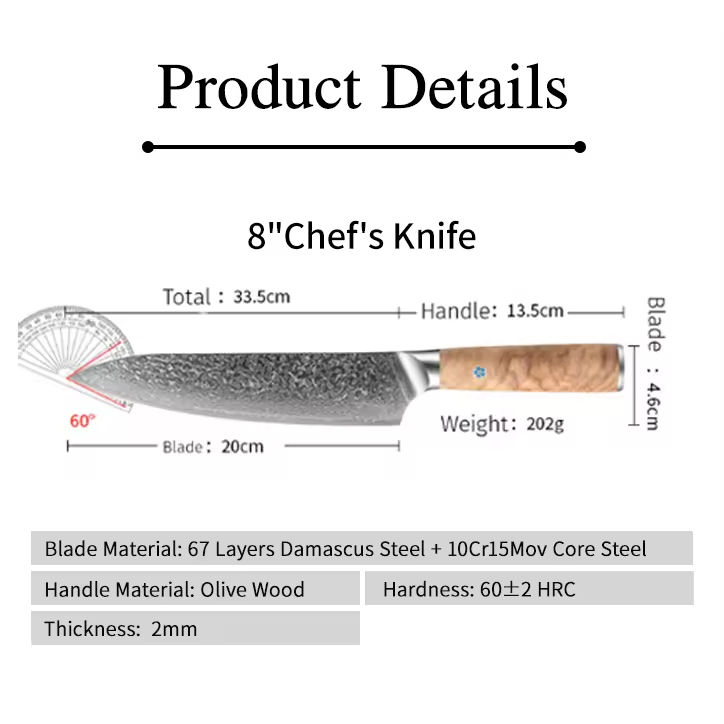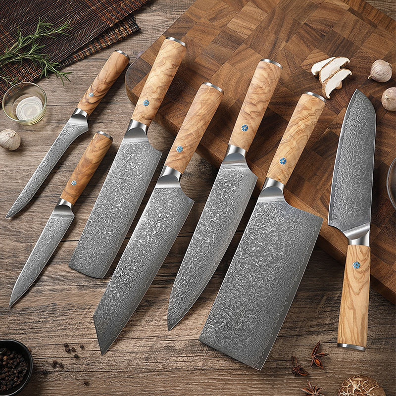 Couteau de chef professionnel personnalisé usine Pakistan Premium Damas en acier VG-10 lame tranchante fait à la main manche en bois va au lave-vaisselle