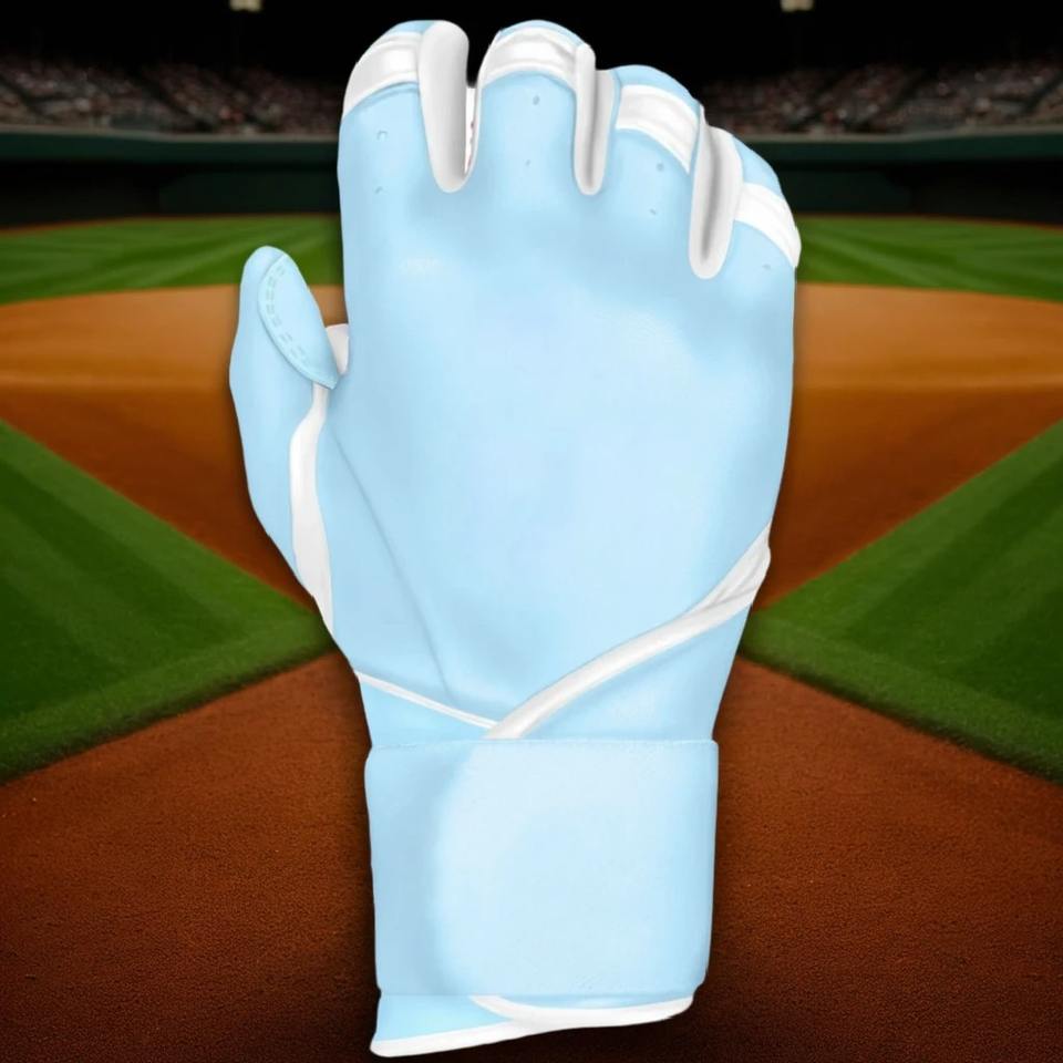 Gants de frappeur de baseball en cuir professionnels personnalisés, antidérapants, bleu clair, durables, protection des mains avec une adhérence supérieure