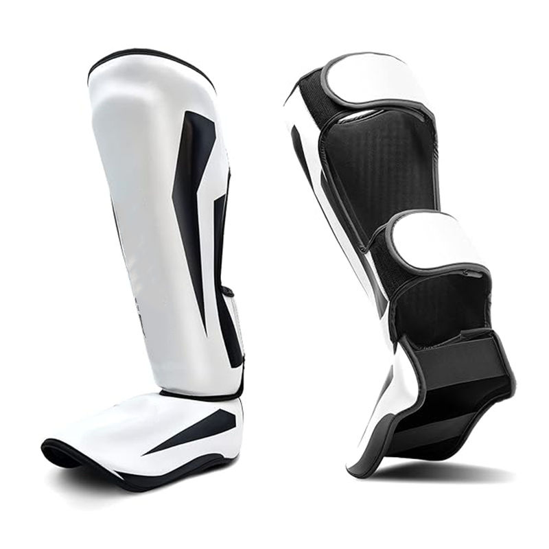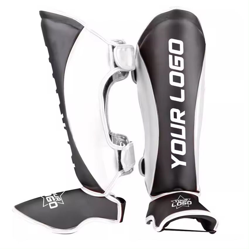 Protège-tibias professionnels personnalisés pour l'entraînement de Muay Thai et de Kickboxing, en cuir PU, réglables et respirants, pour la protection des jambes et des pieds
